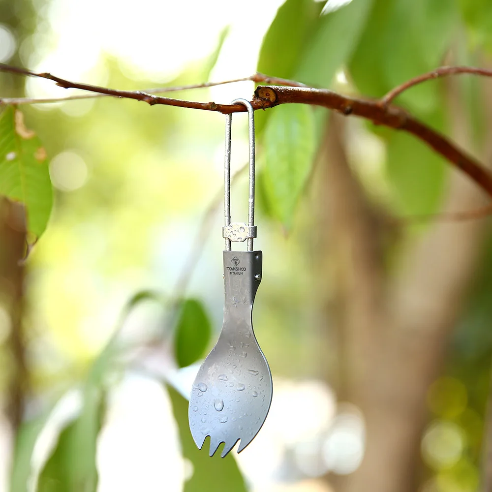 Titanium Folding Spork Outdoor Camping Supplies Hiking Backpacking Dinner Spork Utensil Tableware Fork Spoon for Hiking